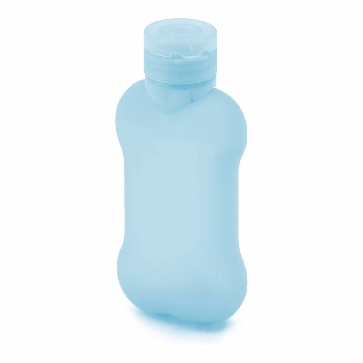 Capacidad 100ml con apertura amplia para fácil llenado y válvula anti-goteo que evita derrames. Se engancha fácilmente a la correa con anilla de polipropileno.