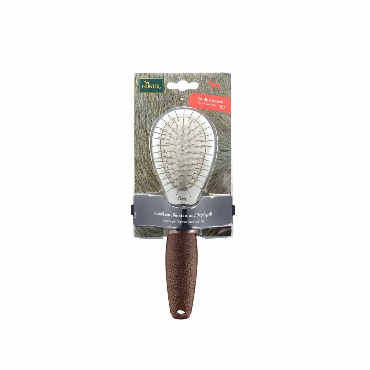 El Cepillo Multifunción Spa «Brushing and Grooming» de HUNTER representa la solución definitiva en grooming canino disponible en dos tamaños (S: 21,0 x 7,0 cm / L: 22,0 x 7,5 cm) que combina tecnología de doble cara con diseño ergonómico alemán para transformar cada sesión de cepillado en una experiencia profesional que beneficia simultáneamente el pelaje, la piel y el bienestar de tu compañero canino.