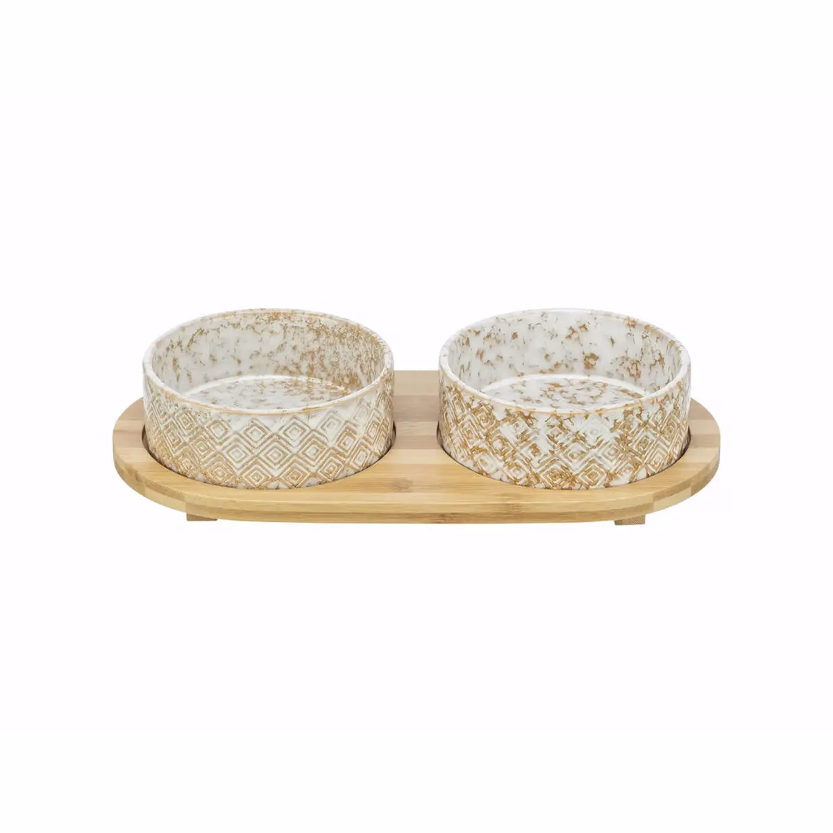 Combina estilo y comodidad con el comedero doble de cerámica y bambú Trixie.
