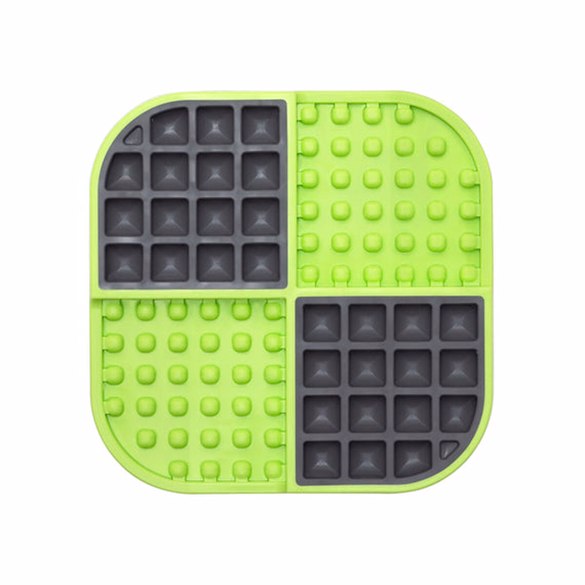 Tiene dos texturas complementarias —ranuras profundas y relieves suaves— que permiten combinar comida húmeda, seca, purés o líquidos sin que se mezclen. Ideal para perros de nariz corta o simplemente para aquellos que comen con demasiada prisa.