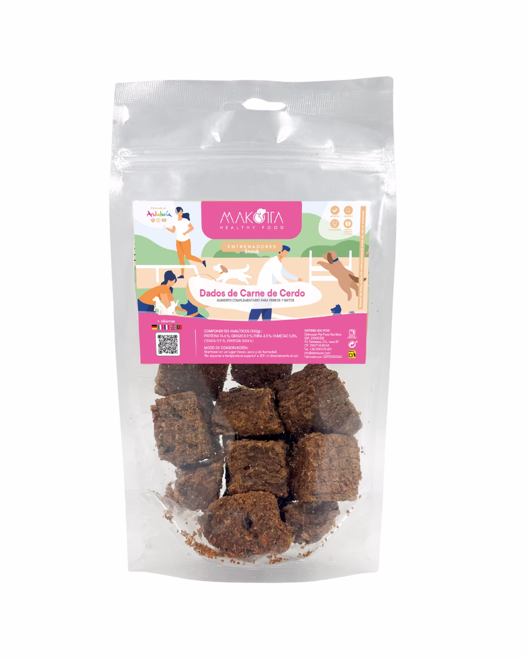 Premios pequeños y blandos elaborados con carne de cerdo, perfectos para sesiones de entrenamiento o como recompensa diaria