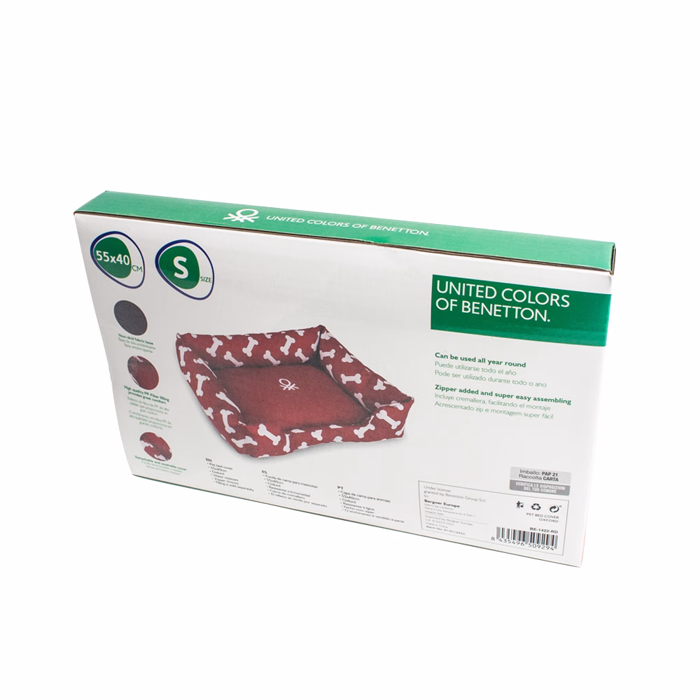Funda Cuna Huesos Benetton diseñada para aportar estilo, confort y funcionalidad al lugar de descanso de tu mascota. Esta funda desenfundable presenta un estampado de huesos de colores sobre fondo vibrante, combinando diseño moderno con tejidos preparados para el uso diario.
