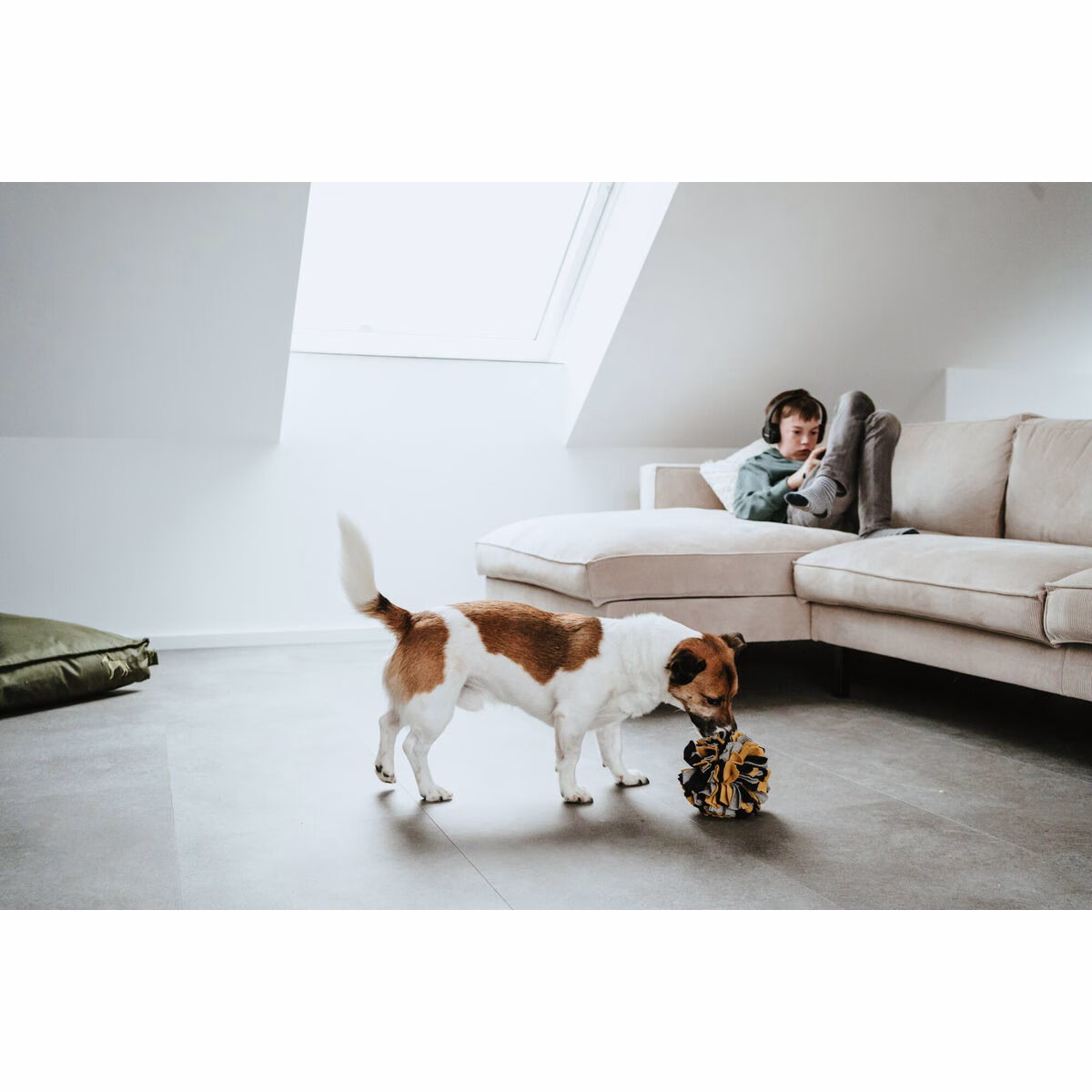 Fabricado con materiales 100 % reciclados, este juguete no solo es respetuoso con el medio ambiente, sino también resistente y lavable a máquina a 30 °C, lo que facilita su limpieza. Ofrece una manera práctica de enriquecer la rutina diaria y alargar el momento de la comida, además de ser perfecto para perros medianos y grandes que necesitan desafíos mentales.