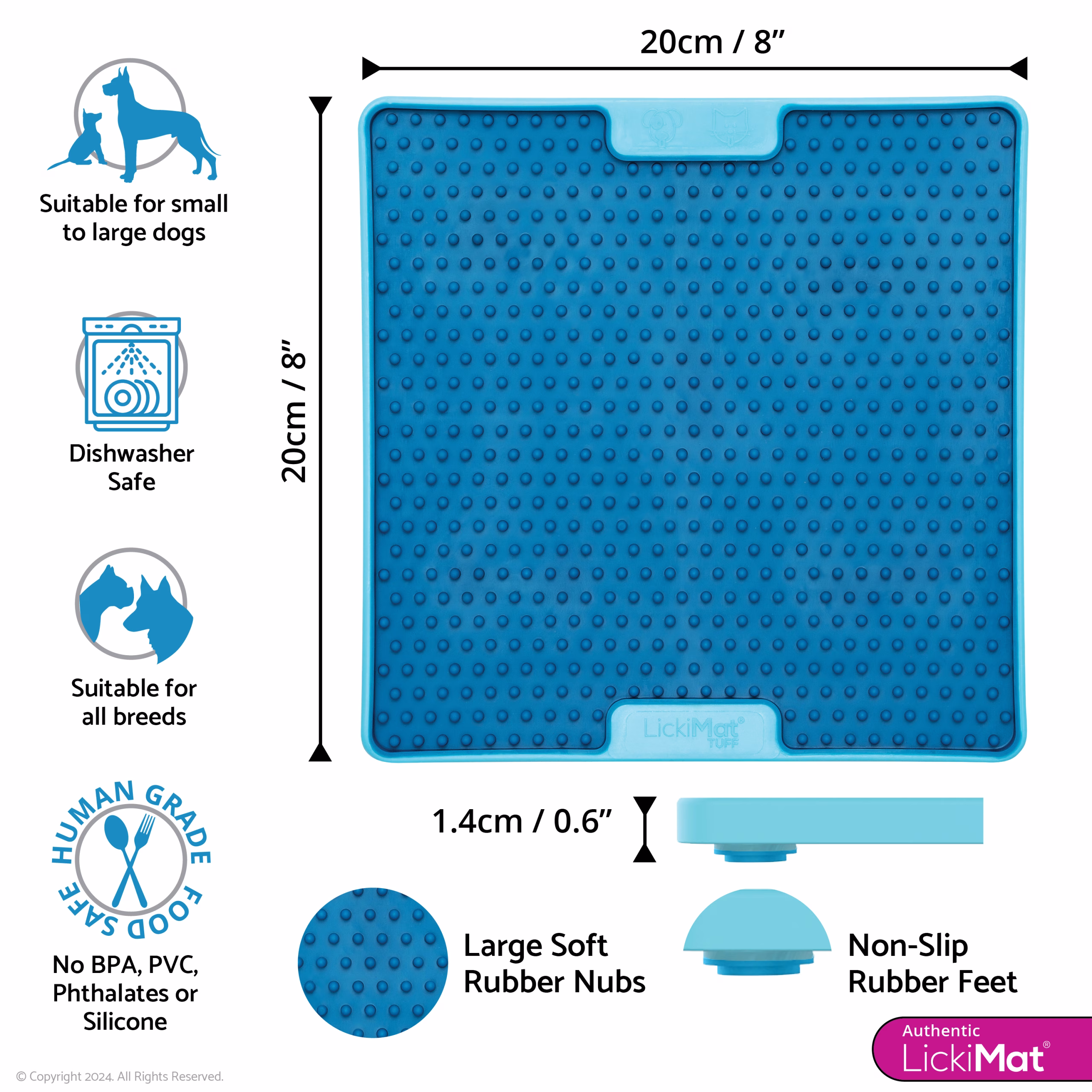La LickiMat Tuff Pro Soother es una solución avanzada para enriquecer la rutina de snack de tu mascota, promoviendo tanto bienestar físico como emocional al convertir un simple alimento en una actividad tranquila, entretenida y saludable.