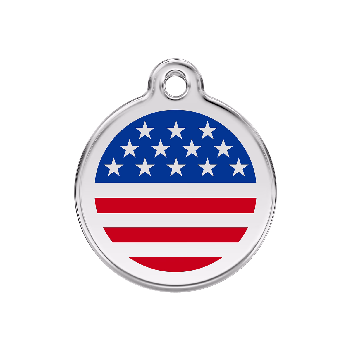 Dale a tu mascota una identificación única con nuestra Placa ID Bandera de EE.UU.. Esta placa premium combina estilo divertido con durabilidad excepcional.