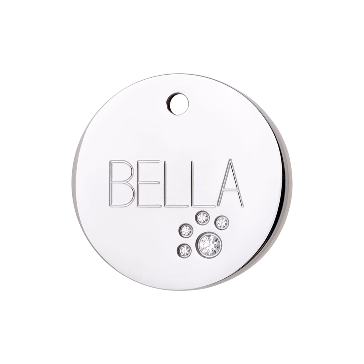 La Placa ID Círculo Diamante es una placa personalizable y resistente para perros que combina estilo y funcionalidad.