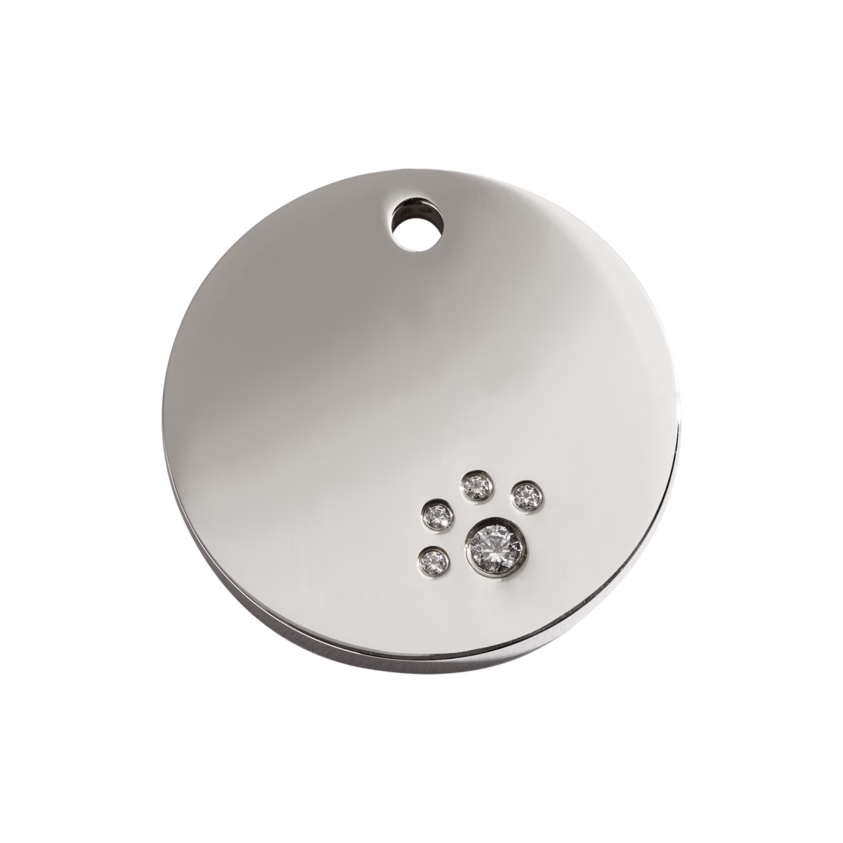 Dale a tu mascota una identificación única con nuestra Placa ID Círculo Diamante. Esta placa premium combina estilo divertido con durabilidad excepcional.