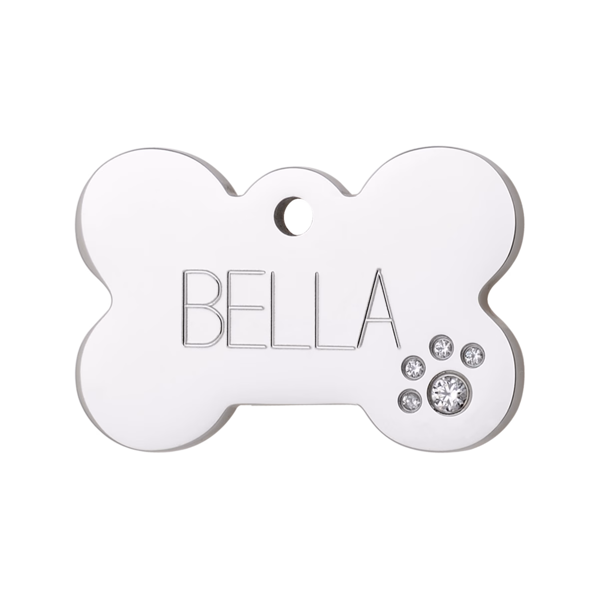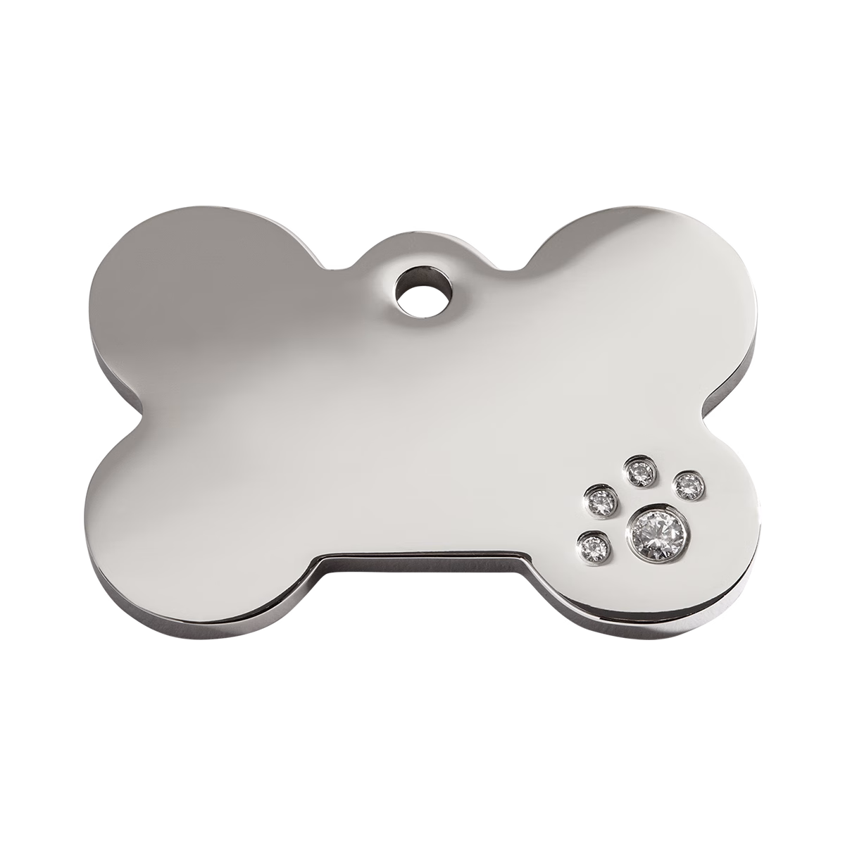 Dale a tu mascota una identificación única con nuestra Placa ID Hueso Diamante. Esta placa premium combina estilo divertido con durabilidad excepcional.