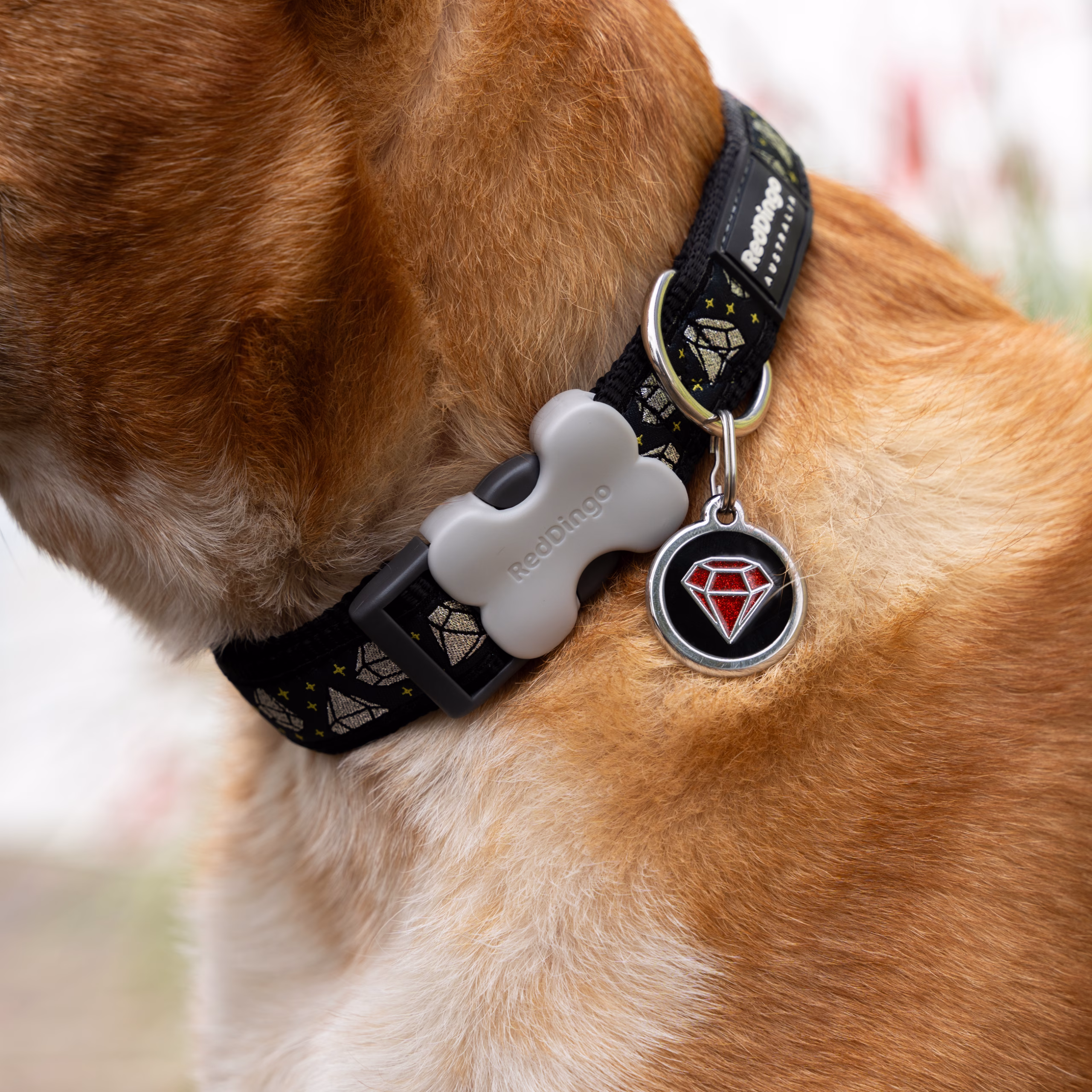 La Placa ID Rubí Brillo es una placa personalizable y resistente para perros que combina estilo y funcionalidad.